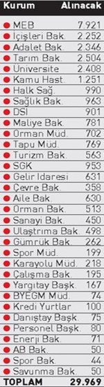 Temmuz ayına kadar bin 496 kişi istihdam eden Tarım Bakanlığı ise yılsonuna kadar 2 bin 504 kişiyi daha işe alacak. 3 bin 500 kişilik geçici personel alımı yapacak olan kamu üniversiteleri ise bugüne kadar bin 92 kişiyi istihdam etti.