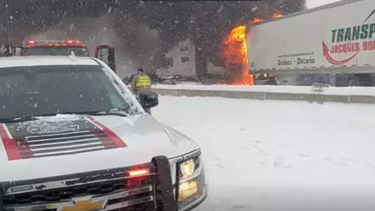 Kanada'nın Ontario eyaletindeki Highway 401 kara yolunda şiddetli kar fırtınasının tetiklediği korkunç bir zincirleme kaza meydana geldi. Görüş mesafesinin düşmesiyle 50 aracın birbirine girdiği kaosta iki tırın arasında sıkışan bir otomobil aniden alev aldı.