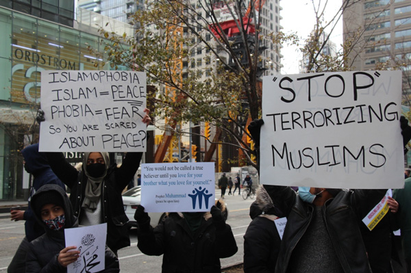Kanada'da yaşayan Müslümanlar, İslam düşmanlığını körükleyen Fransa Cumhurbaşkanı Emmanuel Macron'a karşı eylem yaptı. Protesto gösterileri sırasında, "Peygamberimiz onurumuzdur", "Müslümanları terörize etmeyi bırakın" ve "Biz tüm peygamberleri seviyoruz" pankartları açıldı.