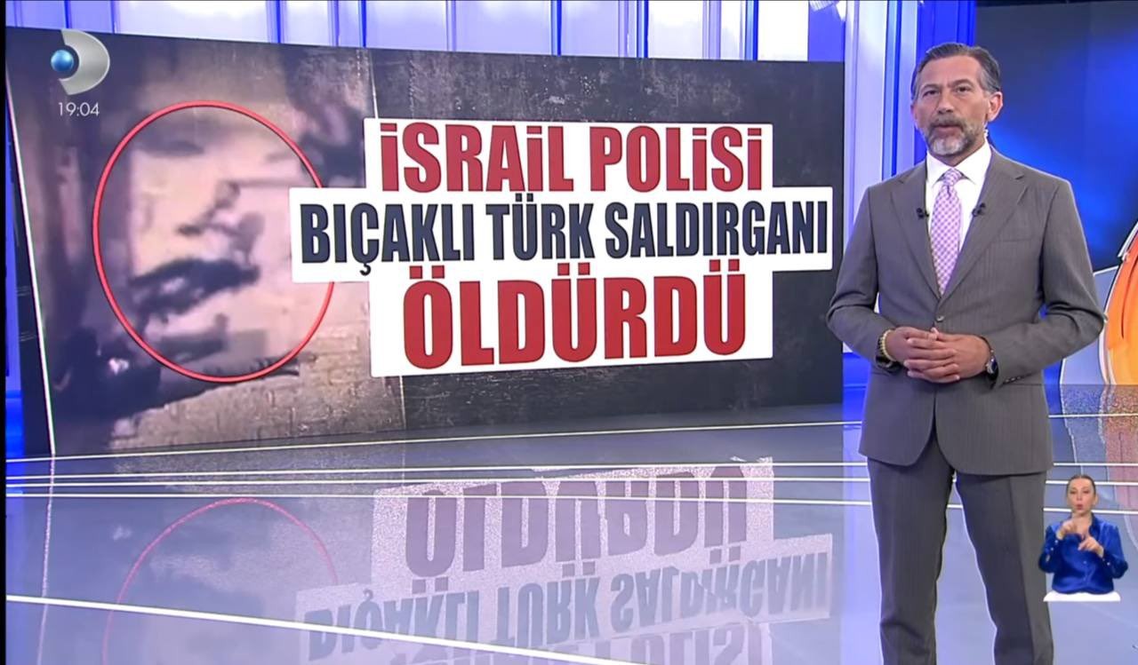 Haber, "İsrail polisi bıçaklı Türk saldırganı öldürdü" ifadeleriyle sunuldu.