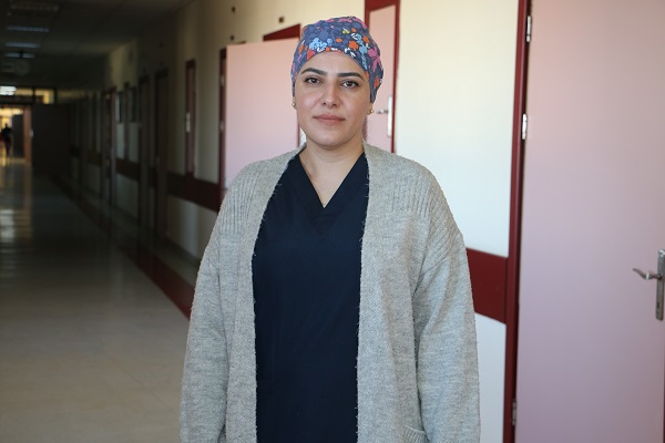 Diyarbakır Gazi Yaşargil Eğitim ve Araştırma Hastanesinde Yoğun Bakım servisinde görev yapan hemşire Betül Aydın, 2 sene önce hamilelik sürecinde meme kanserine yakalandı. Kansere karşı mücadele veren ve tedavi sürecinde gördüğü radyoterapi ve kemoterapinin ardından sağlığına kavuşan Aydın, çevresindekilerin ve karnındaki bebeğinin desteğiyle hastalığın üstesinden geldi.