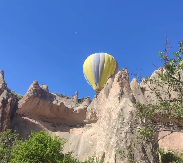 Sabah saatlerinde havalanan turistlerin bulunduğu sıcak hava balonu, bir süre sonra henüz bilinmeyen nedenle kayalıklara sıkışarak zorunlu iniş yaptı. Balondaki 20 turist, yaklaşık 50 metre yükseklikteki kayalıklara indirildi.