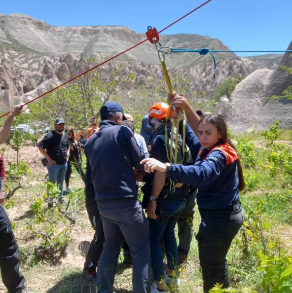 İhbar üzerine olay yerine AFAD ve itfaiye ekipleri sevk edildi. Sıcak hava balonu, itfaiyenin çalışması sonrası, yeniden havalandı. Kayalıklarda mahsur kalan 20 turistin kurtarılması çalışması sürüyor.