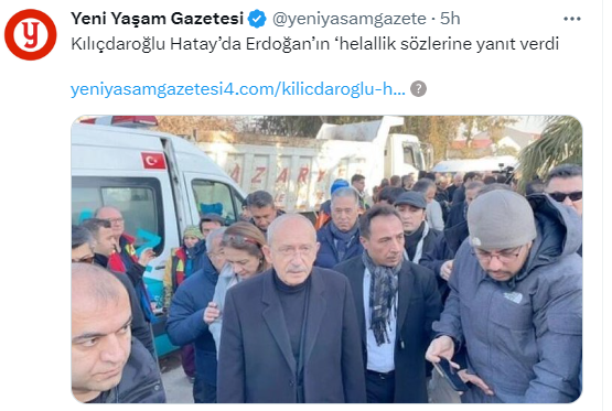 Cumhurbaşkanı Recep Tayyip Erdoğan'ın Hataylılardan helallik istemesini hedef alan 6'lı masanın adayı Kemal Kılıçdaroğlu'nun açıklamaları, PKK yayın organının gazetesi Yeni Yaşam'ın manşetinden servis edildi.