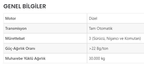 Tankın güç grubu yüksek kapasite soğutma ünitesi ve yakıt tankları ile donatılmıştır. Soğutma ünitesinin akıllı bir yazılım tarafından soğutulması optimum tork verimi ve yakıt tasarrufu sağlarken, araçta bulunan iki ayrı yakıt deposu asgari 450 kilometrelik operasyon menzili sunar. Yedek güç ünitesi ise batarya sistemini şarj ederek araçtaki kulenin aracın motoru çalışır durumda olmadığı zamanlarda kullanılmasını sağlar. Tankın, gelişmiş batarya izleme sistemi optimum güç yönetimi ve sessiz gözetleme yeteneklerini sunar.