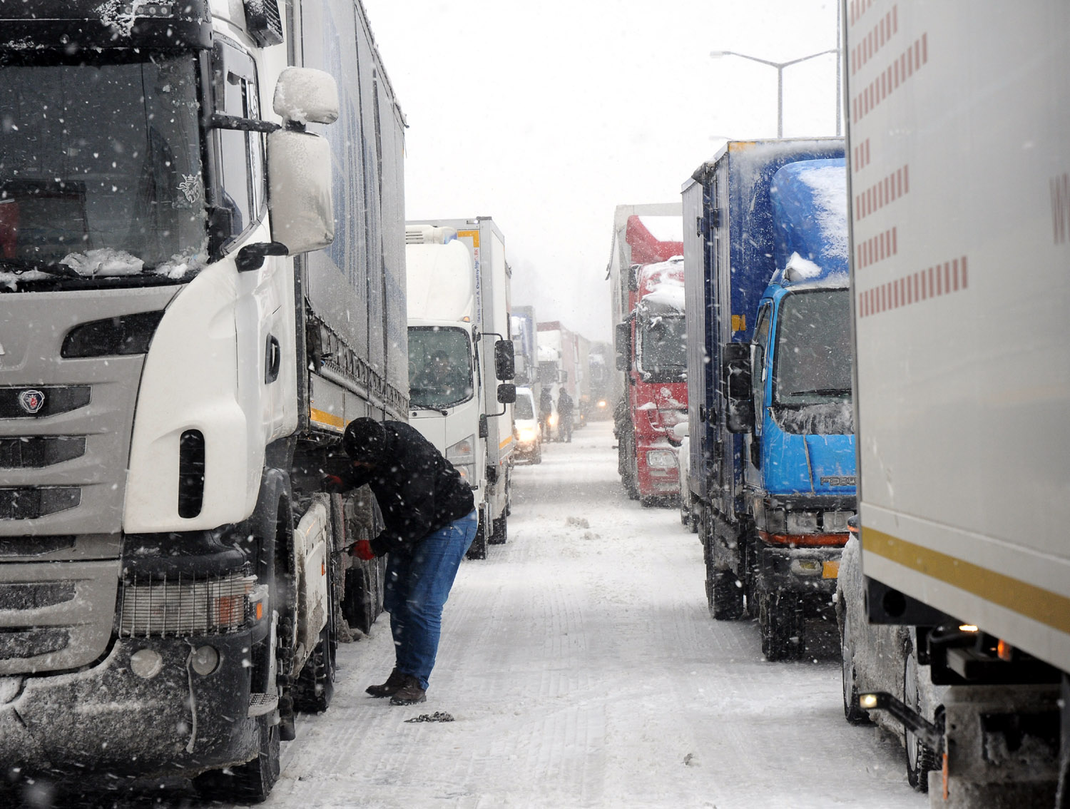 Yoğun yağış nedeniyle bazı TIR'lar ise yol kenarında bulunan park alanına girerek geceyi burada geçirdi. Sürücüler kar bitmeden yola çıkamayacaklarını belirtti.