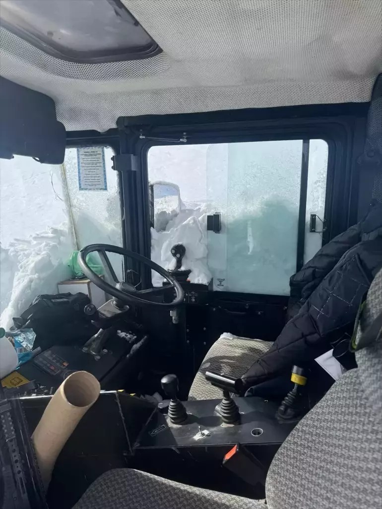 Yer yer 5 metreyi bulan kar kütleleri arasında çalışan kar savurma makinesinin üzerine aniden bir çığ daha düştü. İş makinesi karlar altında kalırken operatör saniyelerle kurtuldu. Olay sonrası yaşananları cep telefonu kamerasıyla kaydeden operatör, olayın büyüklüğünü gözler önüne serdi.