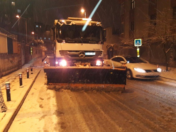 Karla mücadele için oluşturulan ekipler, yaklaşık 200 personelle 24 saat gece ve gündüz ekipleri olmak üzere vardiyalı olarak ilçe genelinde görev başında. Belediye ilçe sınırları içerisinde kar, buzlanma ve dona karşı yerinde ve zamanında müdahale edebilmek adına yaklaşık 200 personel kesintisiz hizmet veriyor. Ayrıca ekipler, İlçe genelinde 11 adet kar küreme ve tuzlama aracı, 23 adet destek tuzlama aracı, 7 adet bobcat, 1 adet greyder ve 11 adet kepçeden oluşan toplam 66 araç ve makine ile ilçenin kardan etkilenen bölgelerinde yol açma ve tuzlama çalışması başlattı. Araç ve makinelerle kar yağışının yoğun olduğu bölgelerde ise tuzlama yapan ekipler, tıkanan cadde ve sokaklarda yol açma çalışması başlattı.