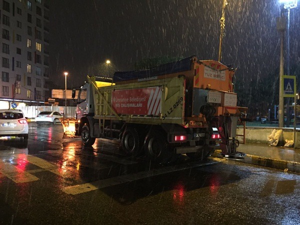 Ümraniye Belediyesi Ulaşım ve Destek Hizmetleri Müdürlüğü karla mücadele ekipleri, kar yağışının olumsuzluğa yol açmaması için ilçe genelinde seferber oldu. Kar timleri 24 saat gece ve gündüz olmak üzere vardiyalı olarak ilçe genelinde görev başında.