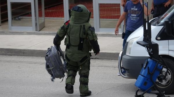 100'üncü Yıl Mahallesi 1003 No'lu Cadde üzerinde, ATM'nin arkasına bırakılan valizden şüphelenen vatandaşlar polise ihbarda bulundu. Olay yerine gelen polis, caddeyi araç ve yaya trafiğine kapattı, cep telefonu sinyalleri de jammer ile kesildi.