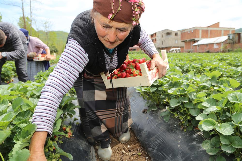 Karadeniz'de çilek hasadına başlandı.