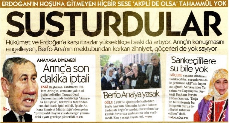 Bülent Arınç'ın minarelerimizden okunan dualara tahammül edemediğini açıklaması ile son günlerde gündemde olduğunu hatırlatan Karahasanoğülu, Cumhuriyet Gazetesi'nin 2015 yılındaki 'Susturdular' başlıklı haberini yorumladı. "O tarihlerde henüz darbe yapılmamış, Bülent Arınç 'Ben ne ahmak adammışım?' dememişti." ifadesini kullanan Karahasanoğlu, "Söz konusu haberin yayınlandığı tarihte Bülent Arınç Turgut Özal Üniversitesinde bir konuşma yapacaktı. Turgut Özal Üniversitesi'ne Fatih Üniversitesinden sonra FETÖ'nün 2 numaralı üniversitesi diyebiliriz. Emniyet oradaki bazı oluşumları tespit ederek Bülent Arınç'ın konuşmasını iptal ediyor. Konferans iptal olunca Arınç'ın avukatlığına da Cumhuriyet Gazetesi soyunmuş." diye konuştu. Aynı gün PKK'lı teröristler tarafından öldürülen sivil Kürt vatandaşların haberinin tüm gazetelerde yer aldığını belirten Karahasanoğlu, Cumhuriyet Gazetesi'nin 'Berfo Ana'ya yasak' başlıklı haberine de dikkat çekti. Karahasanoğlu, "13 sivil Kürt vatandaşımızın katledilmesine sessiz kalan Cumhuriyet, cenazede bakanlara 'Buraya neden geldiniz?' denilerek tepki gösterildiğini yazmış. Berfo Ana'ya sahip çıkıyor gibi görünen Cumhuriyet Gazetesi 13 sivil insanın cenazesini manşetine almamış." dedi.