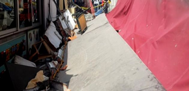 Karaköy Billur Sokak'ta tentelerin monte edildiği duvarın bir bölümü, ağırlığa dayanamayarak büfenin önünde yemek yiyenlerin üzerine çöktü.