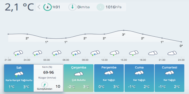 Çok bulutlu, bölge genelinin kar yağışlı geçeceği tahmin ediliyor. Yağışların Konya ve Karaman'ın güneyinde kuvvetli kar şeklinde olması bekleniyor.