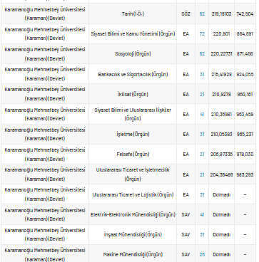 Karamanoğlu Mehmet Bey Üniversitesi 2021 taban puanları ve yüzdelik dilimleri nelerdir?