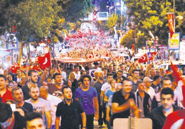 BALIKESİR: Balıkesir'de düzenlenen yürüyüşe yüz binlerce vatandaş katıldı. Terör olaylarını protesto eden grup "Hepimiz Mehmet'iz" diye bağırdı.