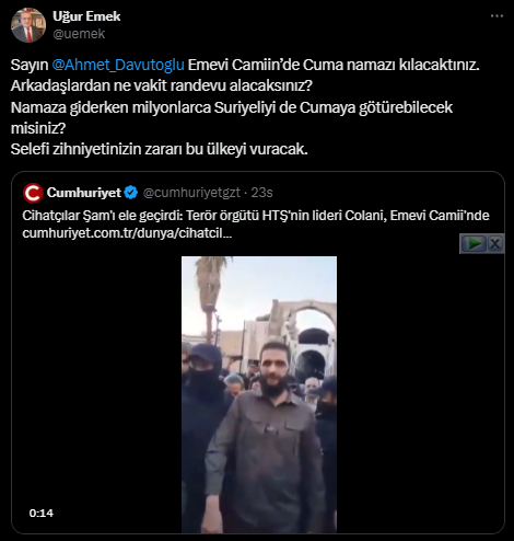 Sayın @Ahmet_Davutoglu Emevi Camiin’de Cuma namazı kılacaktınız.