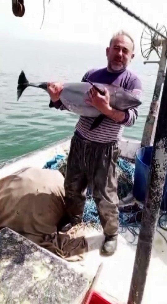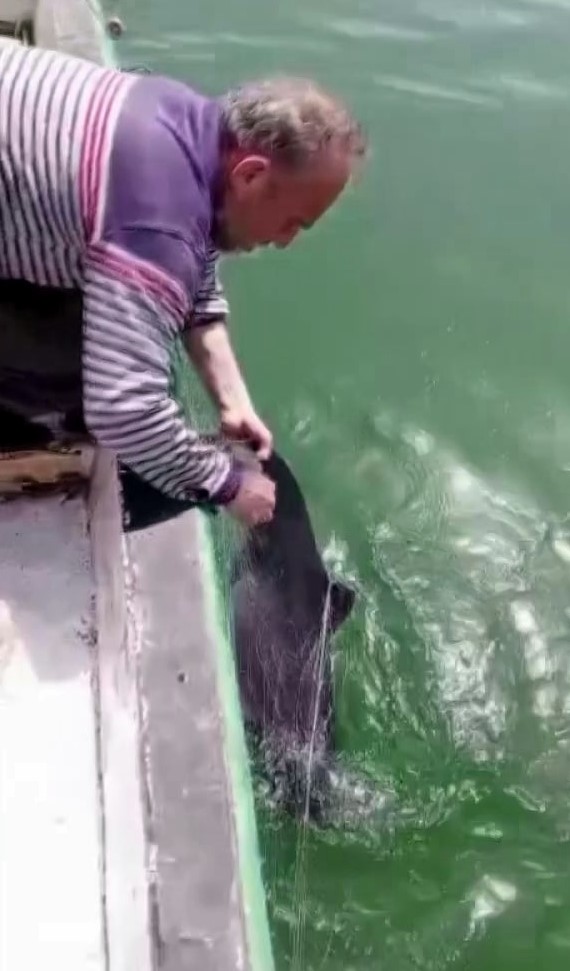 Sakarya’nın Karasu ilçesinde bir balıkçı, ağına takılan yunusu zarar vermeden denize geri bıraktı. “Bir daha buralara gelme, açıklarda yüz” diyerek esprili şekilde uğurladığı anlar cep telefonu kamerasına yansıdı.