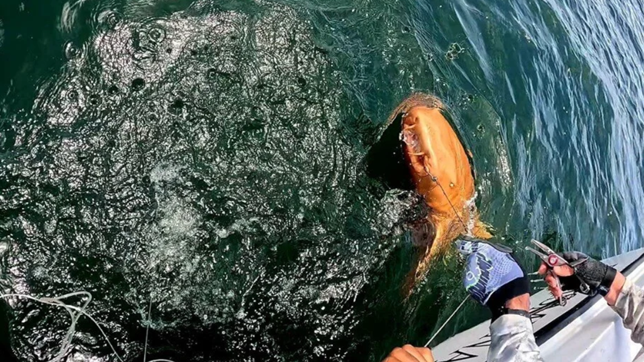 Kosta Rika açıklarında yakalanan yaklaşık iki metre uzunluğundaki hemşire köpek balığı, türünün alışılmış kahverengi tonlarından oldukça farklı görünümüyle dikkat çekti.