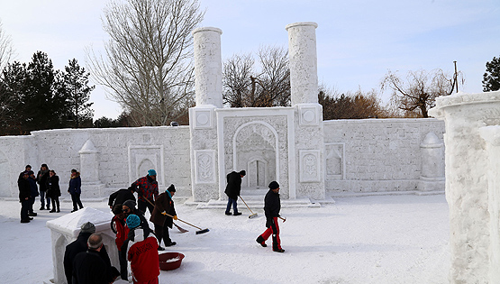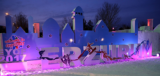 Erzurum'da, 2017 Avrupa Gençlik Olimpik Kış Festivali (EYOF 2017) kapsamına alınan ve kentin tarihi yapılarının kardan benzerlerinin yer aldığı EYOF Kültür Sokağı, törenle açıldı.