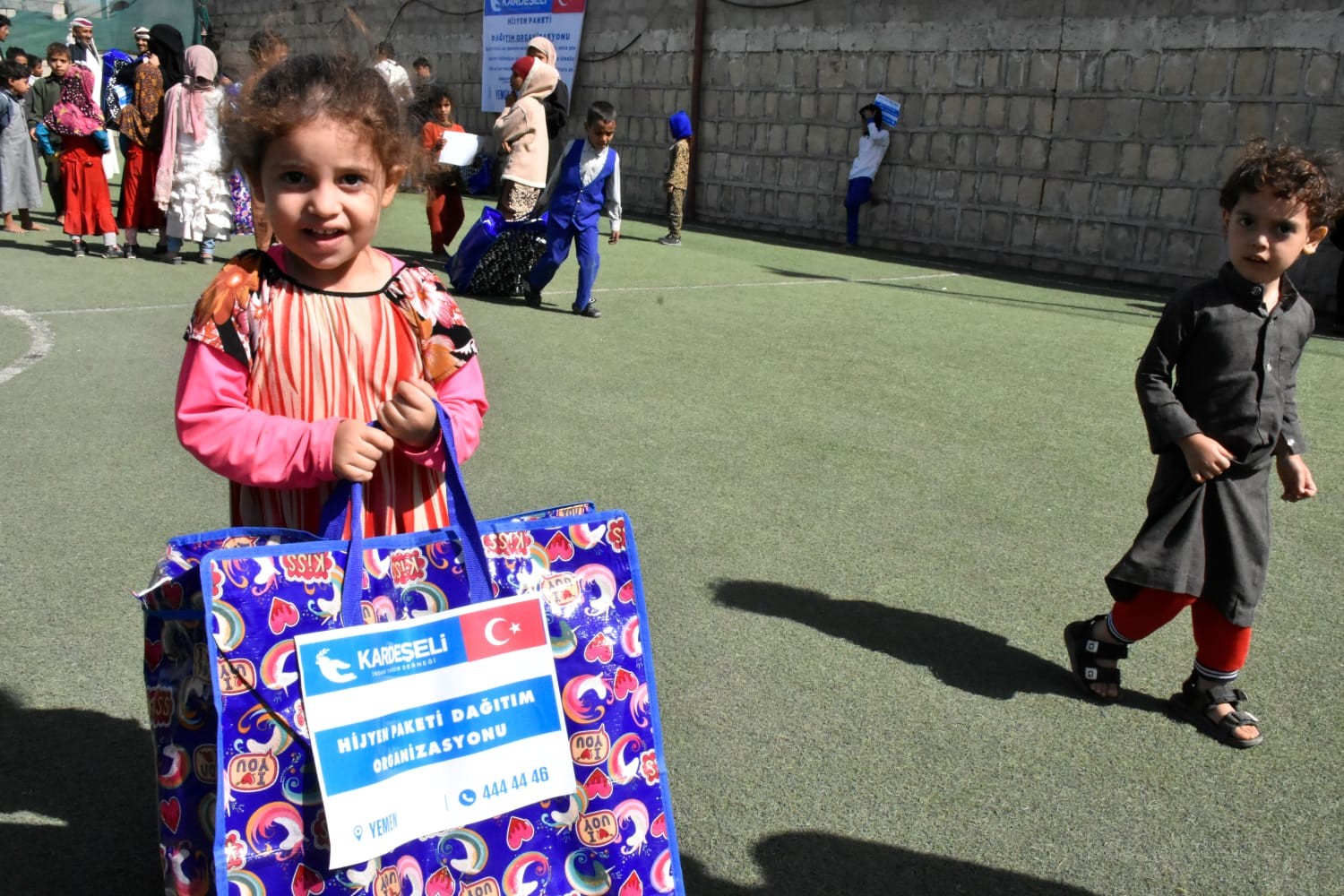 Yemen uzun yıllardır süren iç savaş nedeniyle insanların hayatını kaybetmesi, evlerini terk etmesi, açlık ve su krizi ile mücadele ediyor. Diğer yandan hijyen ve sağlık sorunları ile de mücadele ediyor. Bu mücadelesinde Yemen halkını yalnız bırakmayan Kardeş Eli Derneği Yemen’de temiz su, gıda paketi ve hijyen paketi dağıtımı gerçekleştirdi