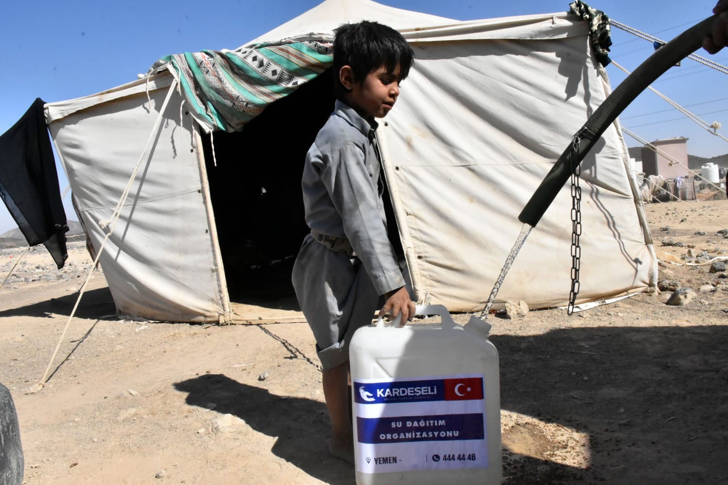 Ülkede şebeke suyunun bulunmaması, su kaynaklarının ise insanların yerleşimlerinden uzakta bulunması ve su kıtlığı nedeni ile Yemen halkı temiz suya erişemiyor. Temiz suyun kıymetli olduğu Yemen’e, Kardeş Eli Derneği 100 tanker su dağıtımı gerçekleştirdi. Dernek, Veysel Karani gibi Yemen’in uçsuz bucaksız çöllerine yardımlarını ulaştırmaya devam ediyor.