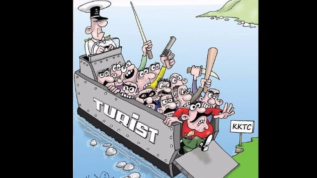 Karikatürde ellerinde pala ve silahlar olan insanların Ada'ya bir çıkarma gemisi ve general ile giriş yaptığını gösteren karikatür tepki topladı. KKTC'nin önde gelen 16 sivil toplum örgütü yayınlanan karikatüre tepki çekmek amacıyla Kıbrıs Gazetesi önünde eylem yaparak kapıya siyah çelenk bıraktı.