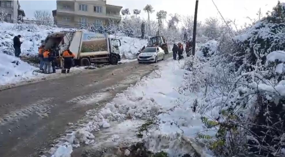 Bartın'da yoğun kar yağışı ve buzlanmaya karşı yapılan uyarıların sürdüğü sabah saatlerinde, Ağdacı Mahallesi'nde belediyeye ait çöp kamyonu kontrolden çıkarak geriye doğru kaydı. Kamyonun arkasındaki belediye işçisi, kayarak toprak zemine çarpan araç ile toprak zemin arasında sıkıştı.