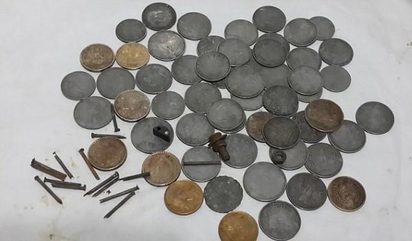 Doktorlar tam 240 işlem sonrasında metal objelerin bir kısmını çıkarmayı başardı. 34 yaşındaki adamın midesinden çivi, para, vida, pil ve mıknatıs gibi pek çok çeşitli metal çıkarıldı.