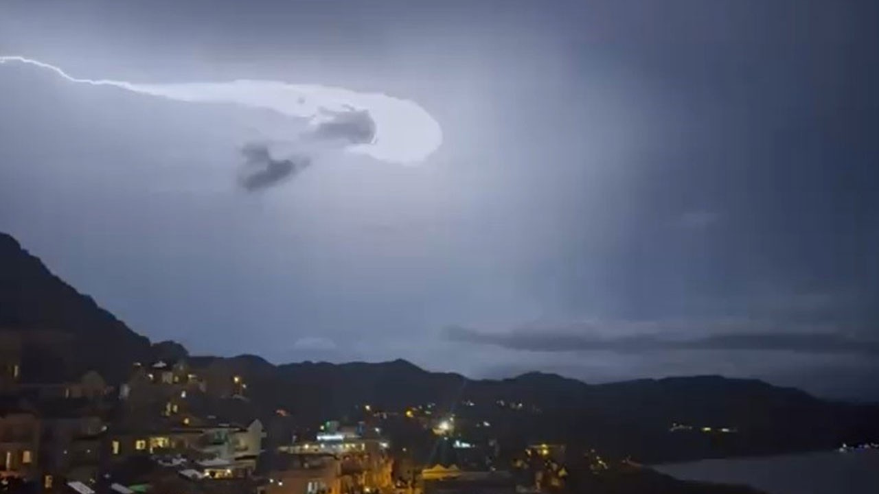 Antalya Kaş'ta akşam saatlerinde etkili olan gök gürültülü hava, aralıksız çakan şimşeklerle gökyüzünü aydınlattı.