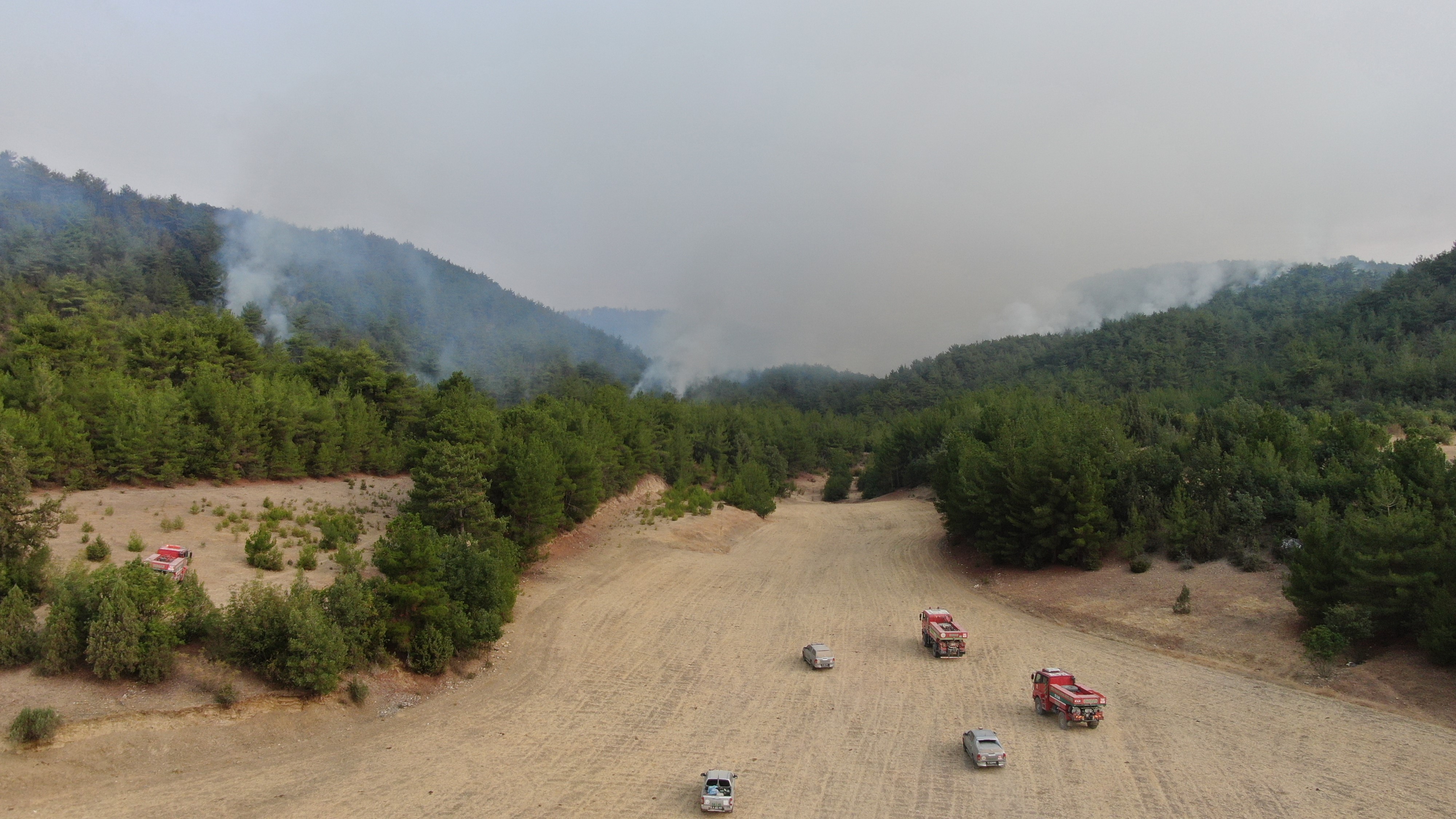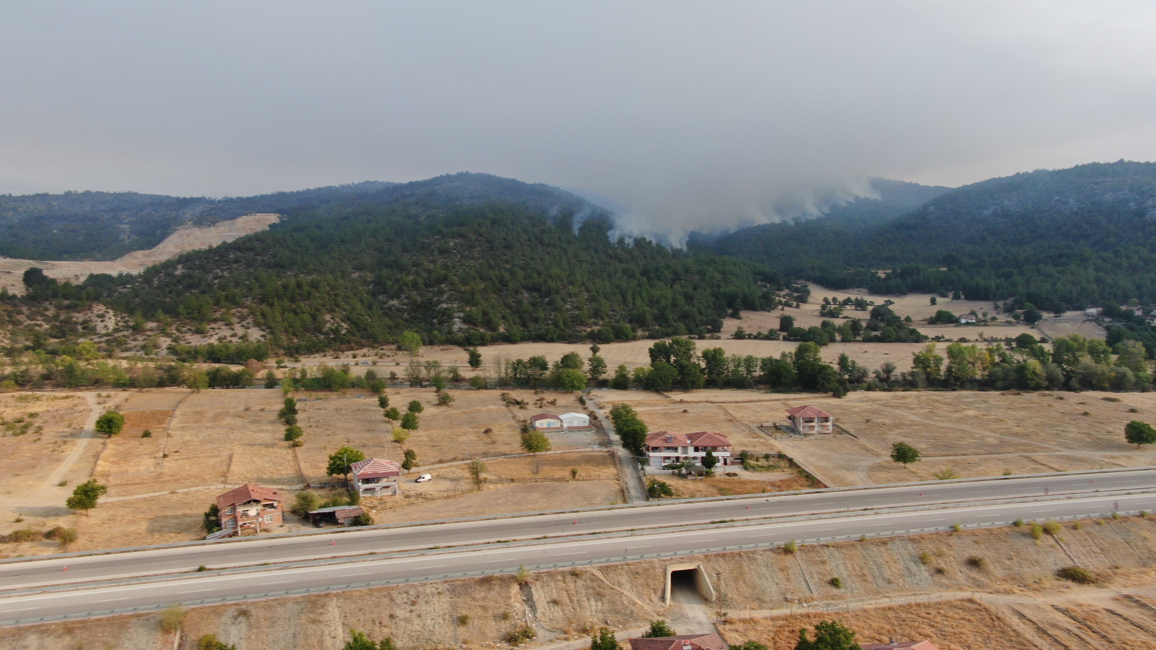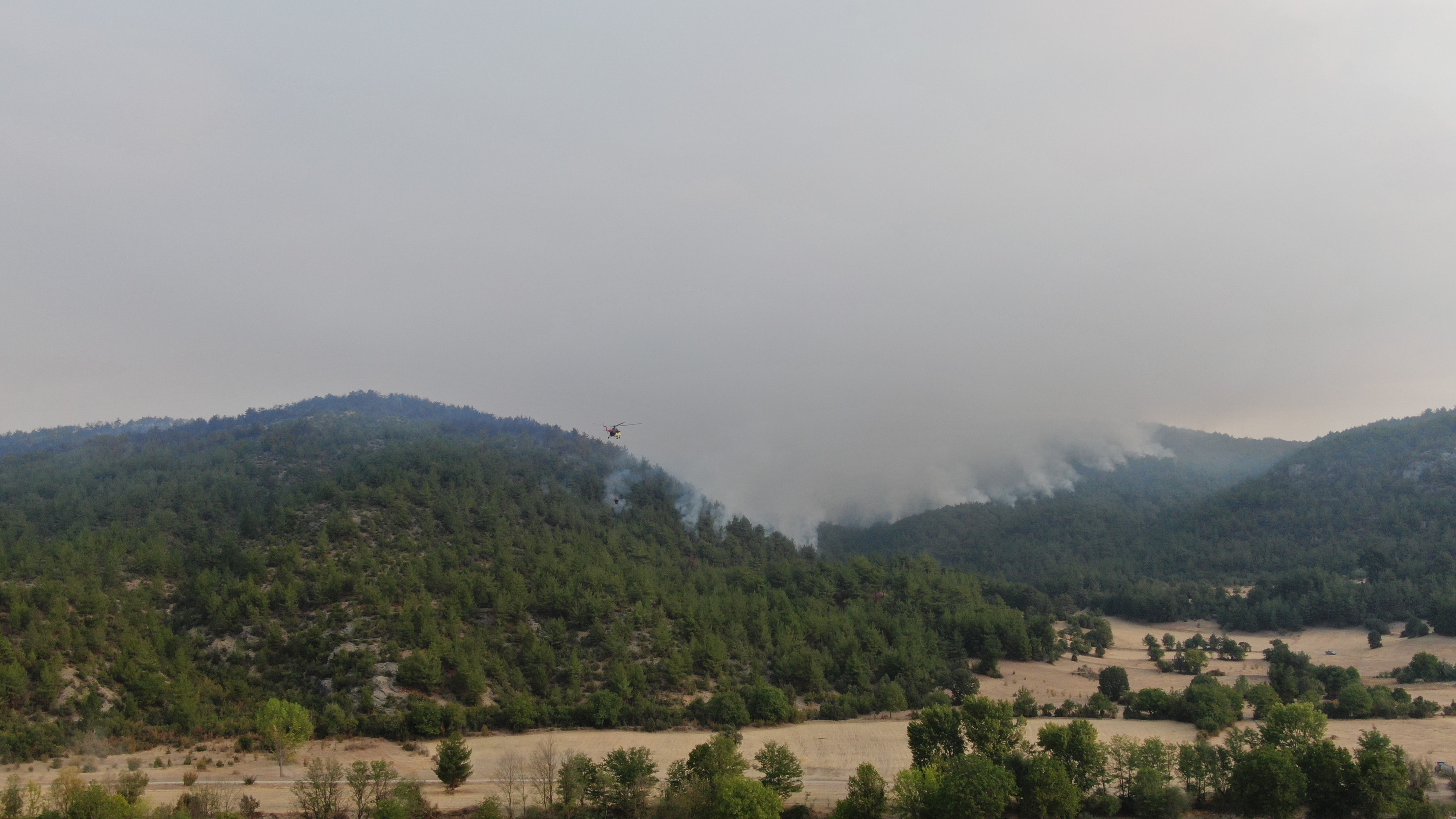 Yeşilova köyü mevkiine kadar ilerleyen orman yangınına ekiplerin müdahalesi ise sürüyor. Söndürme çalışmaları havadan görüntülendi.