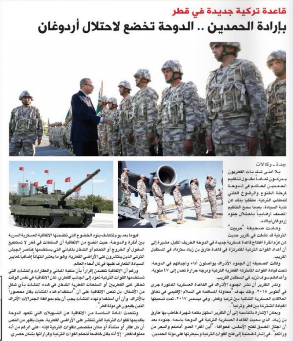 Prens Selman kontrolündeki Suudi gazeteleri Katar’ın Türkiye tarafından işgal edildiği yorumlarını paylaştı. Yeminli Türk düşmanı Suudi gazeteleri, kendi ülkelerindeki Amerikan üslerine tek bir söz söyleyemedi.