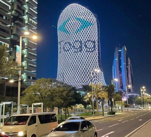 Türkiye'nin kendi imkanlarıyla ürettiği, yerli ve milli otomobilimiz Togg'un logosu, Katar'da şehir merkezinde yansıtıldı.