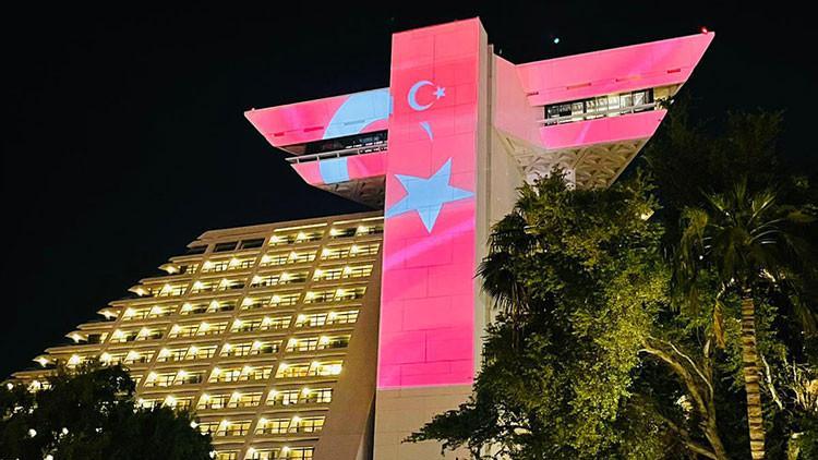 Katar'ın sembol binaları Doha'da Türk bayraklarıyla aydınlandı