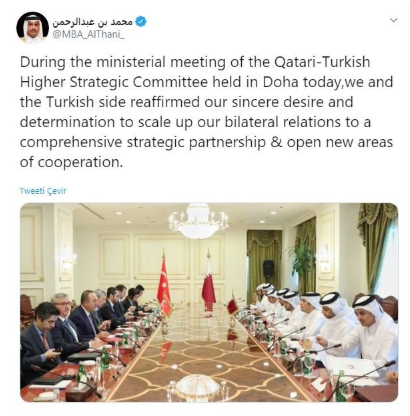 Katar Dışişleri Bakanlığı Twitter’da yaptığı açıklamada, kararın bugün bakanlığın Doha’da yapılan Katar-Türkiye Yüksek Stratejik Komitesi toplantısında alındığını belirtti.