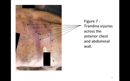 Figür 9 - Göğüs ön yüz ve karın duvarı boyunca linear (çizgisel) yara izleri.