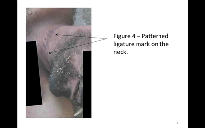 Figür 4 - Boynun sıkarak bağlanması sonucu oluşan iz. kayış tipi bir nesne ile boyun bölgesinde oluşmuş engebeli izler