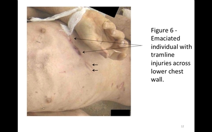 Figür 6 - Göğüs altı duvarı boyunca linear (çizgisel) yara izleri bulunan aşırı kilo kaybına uğramış birey.