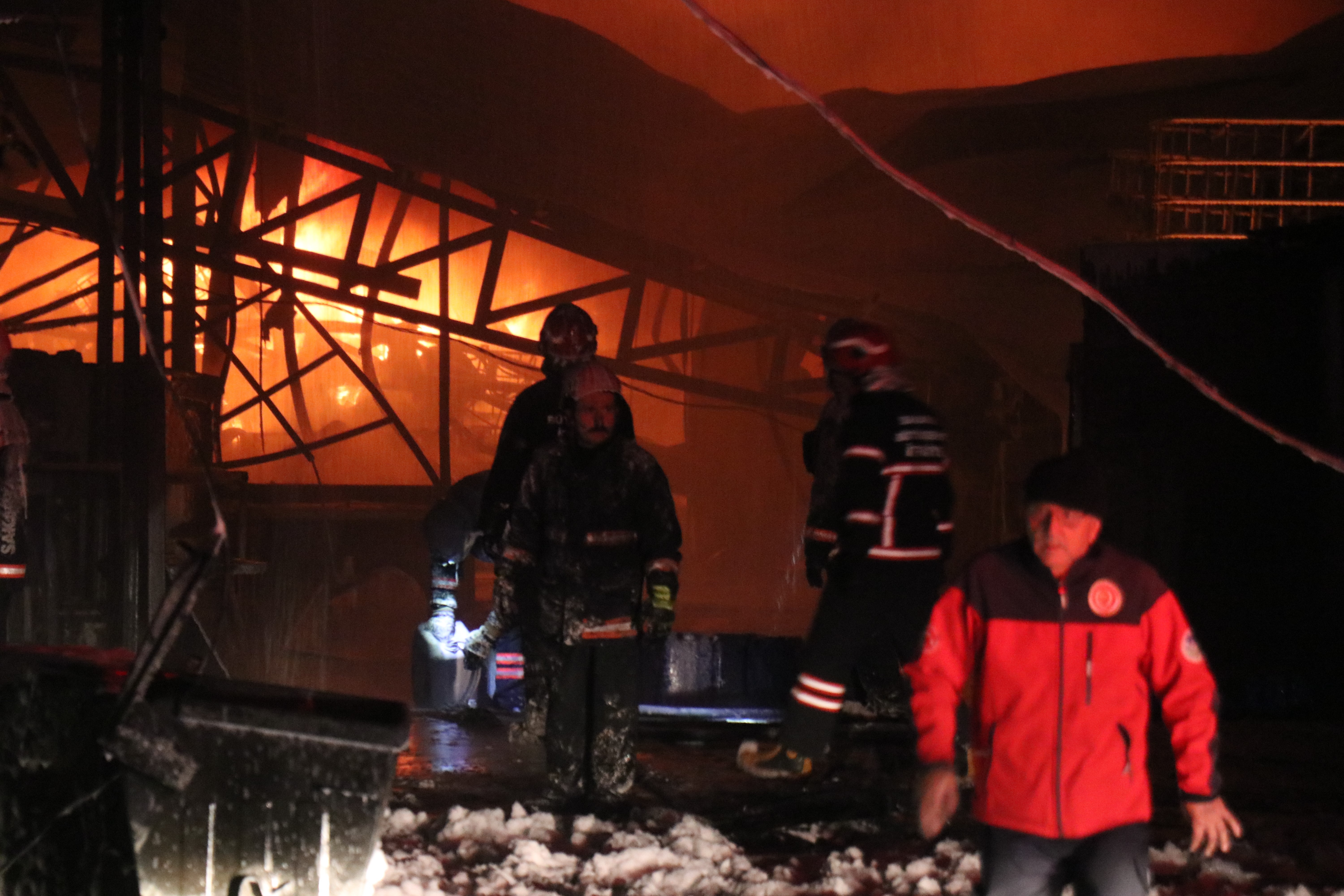 Destek gayesiyle bölgeye Orman İşletme Müdürlüğü'ne ait arazöz ve İl Emniyet Müdürlüğü'ne ait TOMA araçları da sevk edildi. SAKTİM ekiplerinin de destek verdiği yangında ekipler, toplamda 5 iş yerini etkisi altına alan alevleri söndürmek için seferber oldu. Yaklaşık 3 saattir yangını söndürme işlemleri devam ederken bölgeye gelen Sakarya Büyükşehir Belediye Başkanı Yusuf Alemdar, olayda can kaybının yaşanmadığını belirtti.