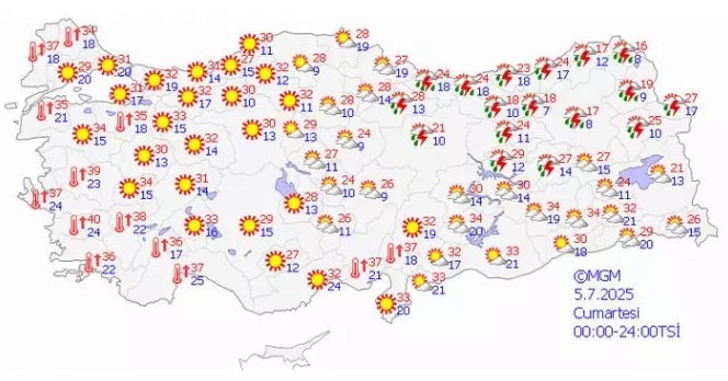 Meteoroloji Genel Müdürlüğü tarafından yapılan tahminlere göre ülkemizin kuzey kesimlerinin parçalı, yer yer çok bulutlu, Orta Karadeniz ve İç Anadolu'nun doğusu, Doğu Karadeniz geneli ve Doğu Anadolu'nun kuzeydoğusunun yerel sağanak ve gök gürültülü sağanak yağışlı, diğer yerlerin az bulutlu ve açık geçeceği tahmin ediliyor.