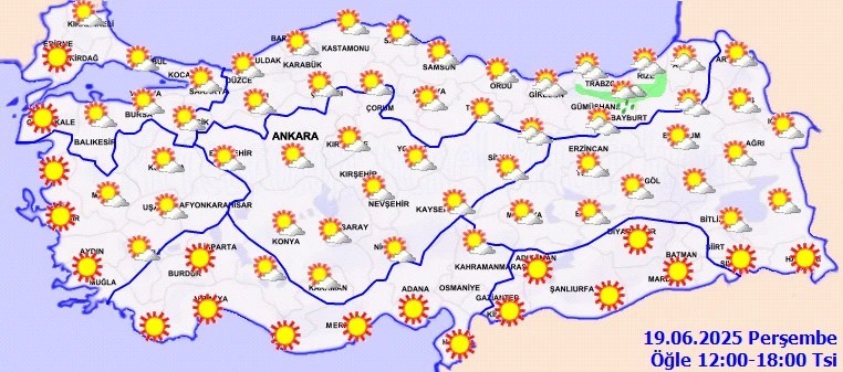 Karadeniz ve Doğu Anadolu’da ise sıcaklıklar nispeten daha düşük, fakat genel hava durumu burada da açık ve güneşli olacak. Rize ve Trabzon’un iç kesimlerinde öğleden sonra kısa süreli yağmur geçişleri görülebilir. Termometreler Trabzon'da 24°C, Rize’de 26°C, Samsun 'da 27°C ve Amasya'da 31°C olacak.