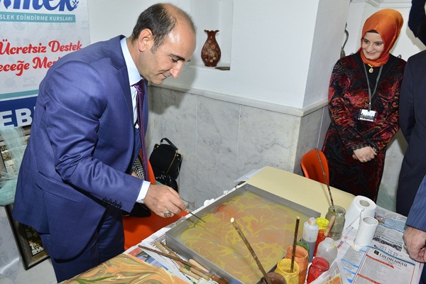 İlçe esnafının her zaman yanında olduklarını söyleyen Yıldırım Belediye Başkanı İsmail Hakkı Edebali, “Kendi ürettikleri ürünleri satanlara münhasır olmak üzere, geleneksel, kültürel, sanatsal değeri olan ve kaybolmaya yüz tutan meslek kollarında faaliyette bulunanları, esnaf muaflığı kapsamına alarak mesleklerini yaşatma fırsatı sunuyoruz. Bu sanatlarla uğraşanlar ustalaştıkça, daha güzel eserler ortaya koydukça sanat tutku haline dönüşüyor. Bunun yanında YIL-MEK kurslarımız sayesinde unutulmak üzere olan çok sayıda geleneksel sanatımıza da yeni zanaatkarlar kazandırarak kültürümüze sahip çıkıyoruz. Restore ederek hanımlarımızın kullanımına sunduğumuz Hançerli Hamamı Kültür Merkezi’ndeki atölyede de Osmanlı sanatları eğitimi veriyoruz” dedi.