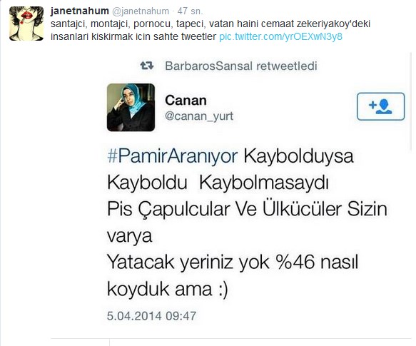 İşte “Canan” isimli fake bir hesabtan atılan bu tweet provokasyonun belgesi niteliğinde: