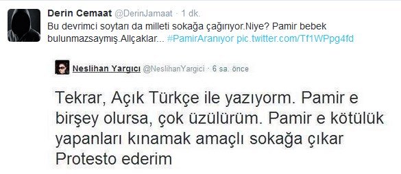 3.5 yaşındaki Pamir için Gezi kalkışmasından bildiğimiz provokatif söylemler de devrede.