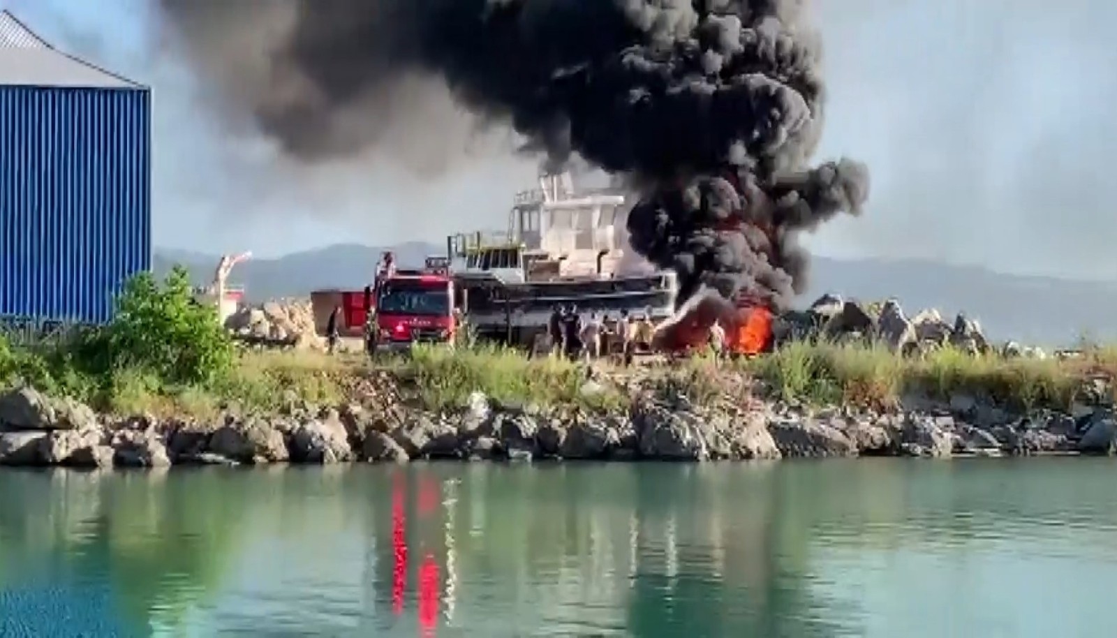Yangın, ilçeye bağlı Tersaneler bölgesinde meydana geldi. Edinilen bilgilere göre, çalışanların kaynak yaptığı sırada kıvılcımların hurdalık alanda yığılı bulunan lastiklere sıçraması sonucu yangın çıktı. Yangının büyümesi üzerine itfaiye ekiplerine haber verildi. Alevleri gören vatandaşlar panik yaşarken, yangın bir vatandaşın cep telefonu kamerasına yansıdı.