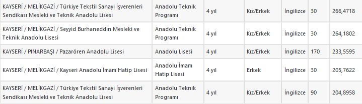 Kayseri liseleri taban puanı ve yüzdelikleri için tıklayınız...