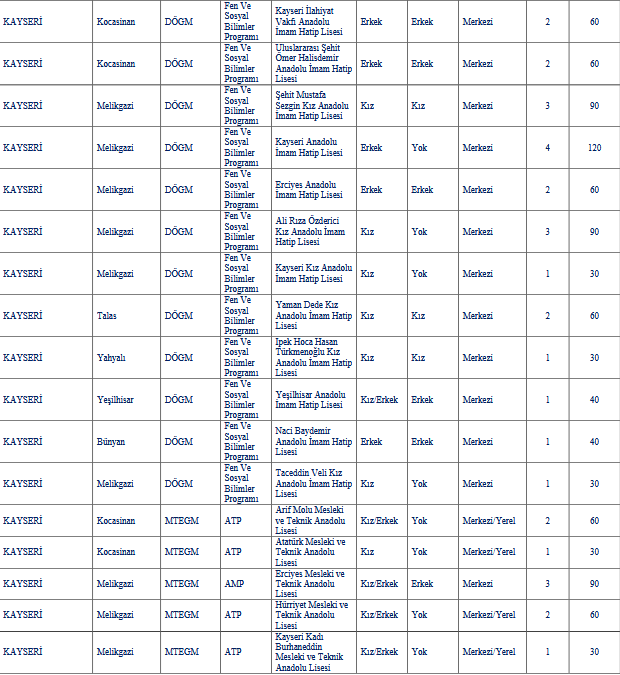 Kayseri liselerinin kontenjan kapasitesi ne kadar?