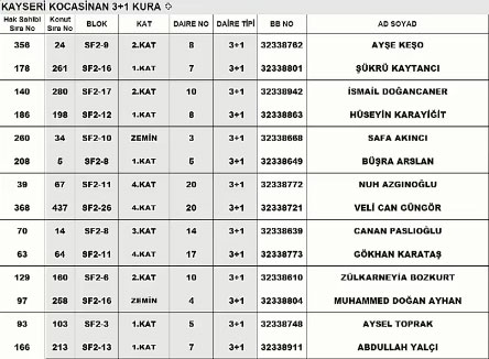 Kayseri TOKİ Kocasinan kura sonuçları isim listesi: