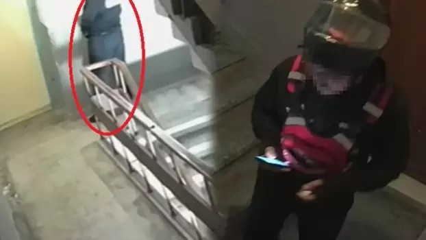 Kamera kaydında, siparişini teslim eden kuryenin, ayrılmadan önce merdiven dairesinin duvarına idrarını yaptığı ve sonrasında binadan ayrıldığı görüldü.