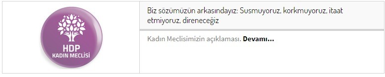 “Bu yapılan savaş aklının savaş hamlesidir.” ifadelerinin sahibi HDP Kadın Meclisi, halkın savaş ortamında olduğu algısını oluşturmaya çalışarak, “Bu çok yönlü provokasyonu boşa çıkarmanın tek yolu … saldırılara karşı güçlü ortak tepkiler vermek, birlikte direnmektir.” ifadeleriyle de kayyım atamalarına karşı halkı direnişe çağırdı. HDP MYK’sından çıkan kararlarla da, HDP’nin Diyarbakır, Bingöl, Tunceli, Batman, Elazığ, Malatya, Erzincan, Gaziantep, Adıyaman, Van, Bitlis, Muş, Ağrı, Hakkari, Kars, Iğdır, Ardahan, Mardin, Siirt, Şırnak ve Şanlıurfa’daki il ve ilçe örgütü yöneticileri, il milletvekilleri, il ve ilçe belediye başkanları, belediye meclis üyeleri ve il genel meclis üyeleri, Van, Diyarbakır ve Mardin HDP il binası önünde eyleme çağırıldı.